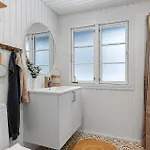 Bathroom facilities at the Aalbaek villa also include a shower and a washing machine.
